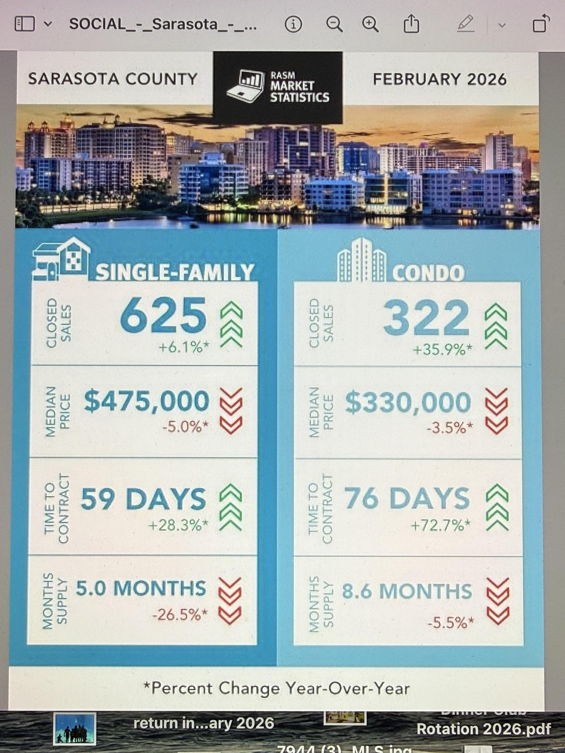 February Sales in Sarasota County – SFH – Sales up 6% – Prices Down 5% – 59 Days to contract and 5 months of Supply. Price it Correctly!